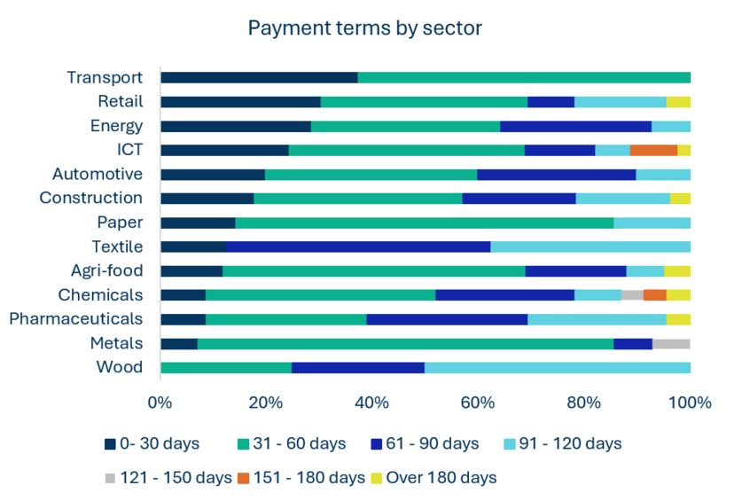 In terms of sectors, wood, textiles and pharmaceuticals offer the most generous average payment terms, while the transport sector remains more restrictive.